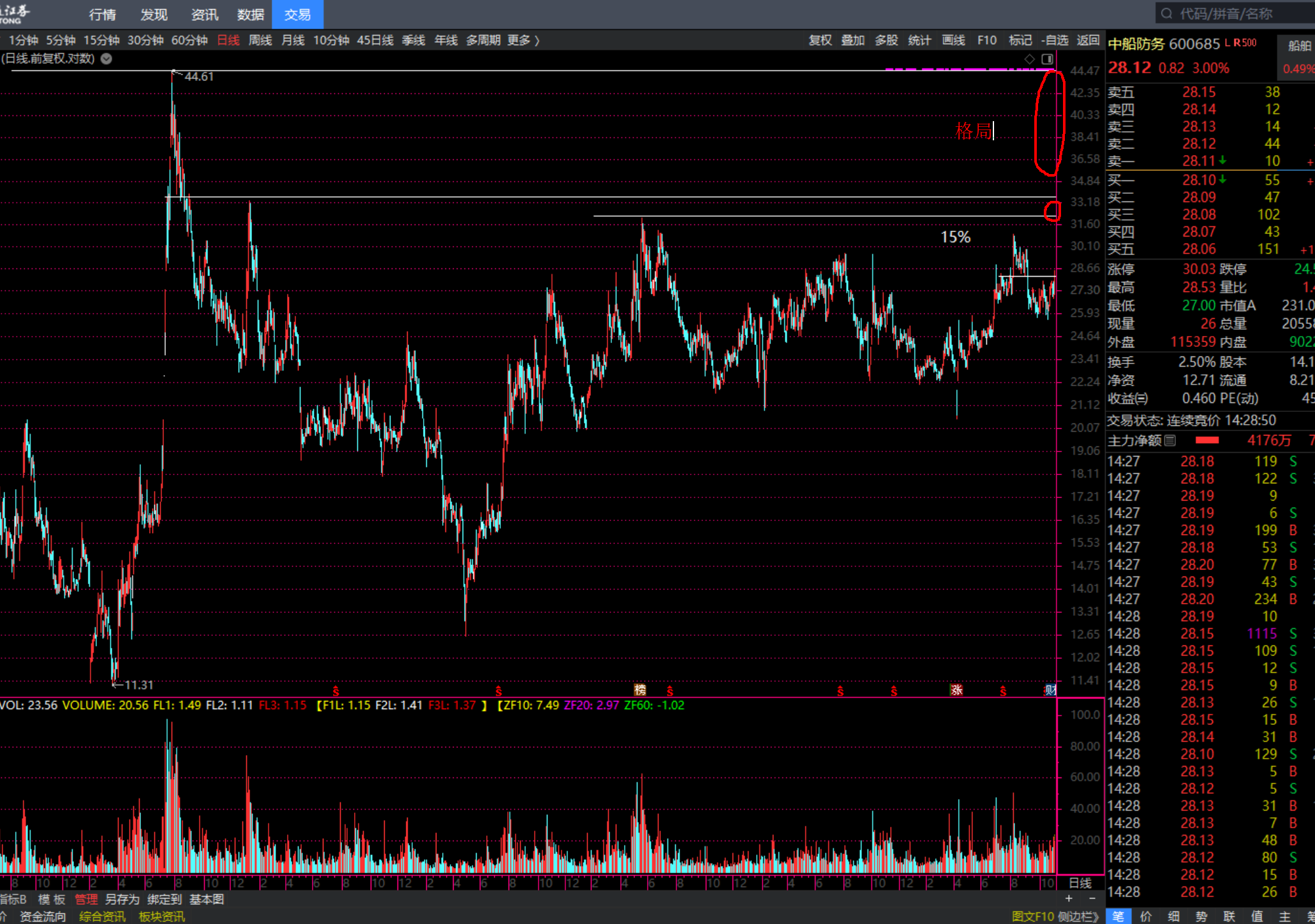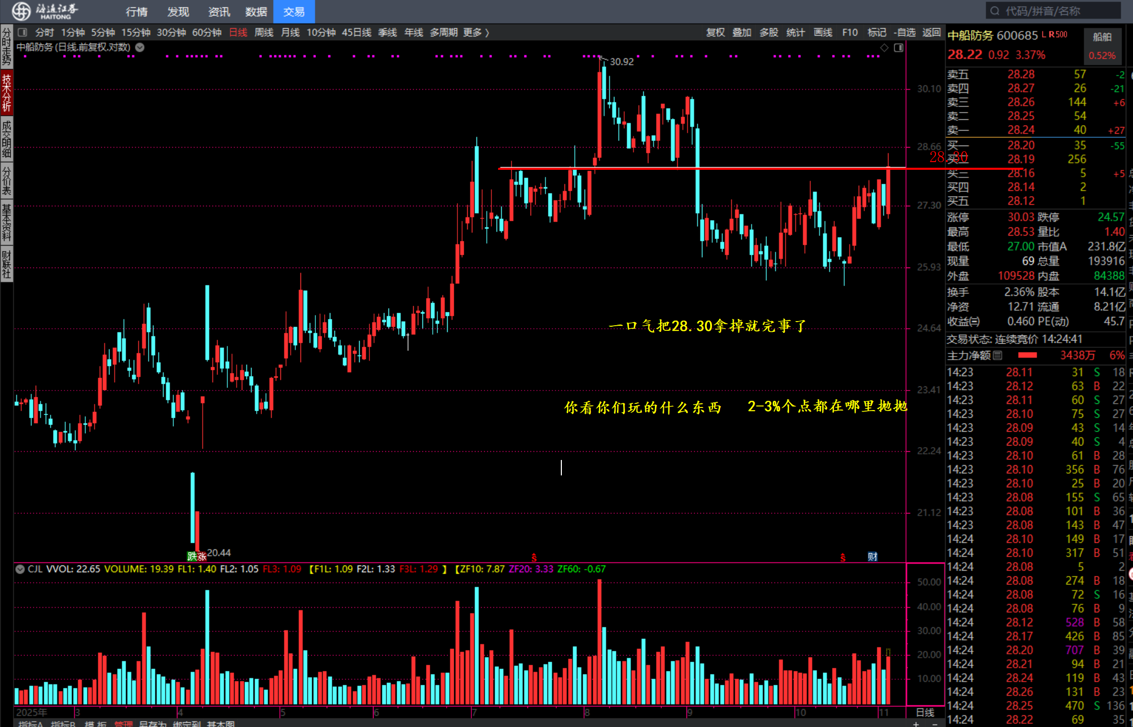貌似锚链和江龙,强势一些; 防务自己这边不要跑,14:15分资金都堆出来,你这群上不了台面竹,难怪就吃几个点。 科技类是几倍几倍收益吃,你们是几个点吃。