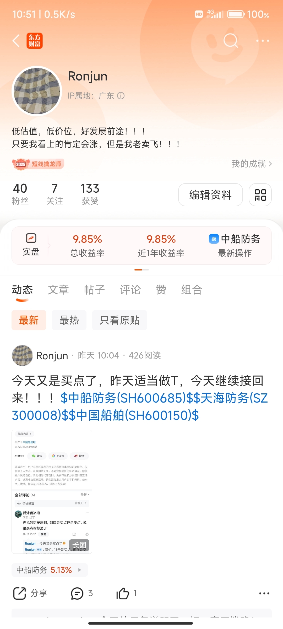 今天又是卖点了,昨天是买点低吸,今天适当买卖别想太多别的!!!不是清底仓!!!是做T……$中船防务(SH600685)$ $中国动力(SH600482)$ $中国船舶(SH600150)$