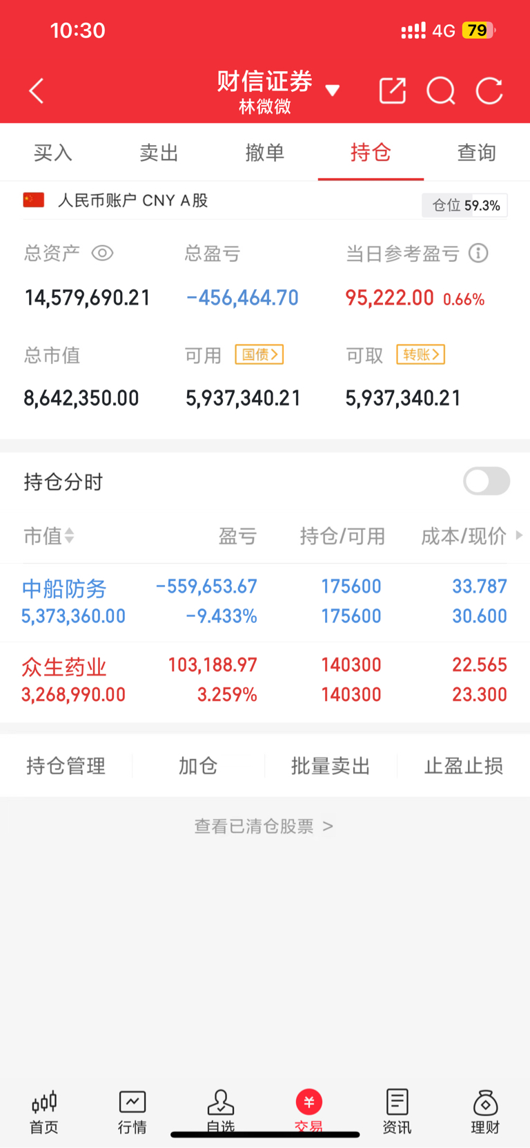 继续持有 $中船防务(SH600685)$ ,$众生药业(SZ002317)$ 这支具备增长潜力,我满怀期待,相信随着后续市场的发展,达成盈利目标。