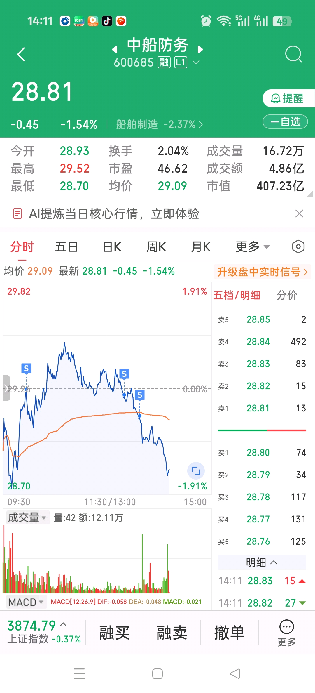 $中船防务(SH600685)$ 差点被宰了。还好跑了