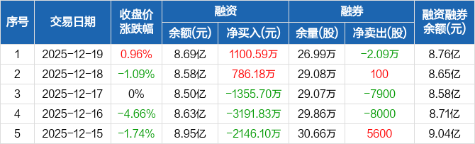 中船防务:融资净买入1100.59万元,融资余额8.69亿元(12-19)