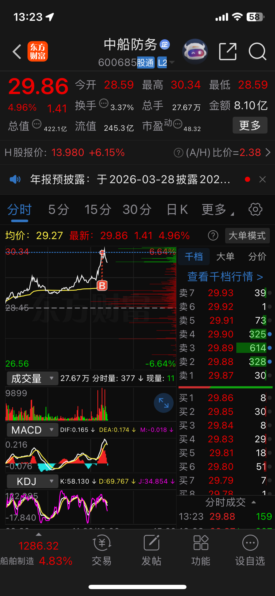 $中船防务(SH600685)$ 我来站岗了