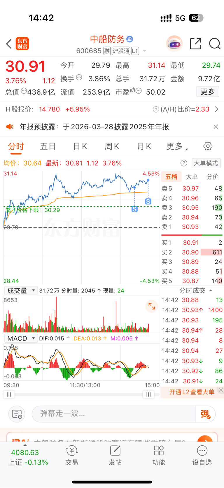 $中船防务(SH600685)$ 头也不回