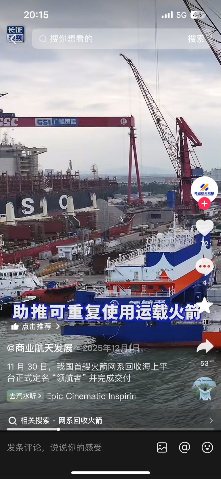 $中船防务(SH600685)$ 看到了广船国际,旁边停的是新造的首艘火箭回收海上平台“领航者”……