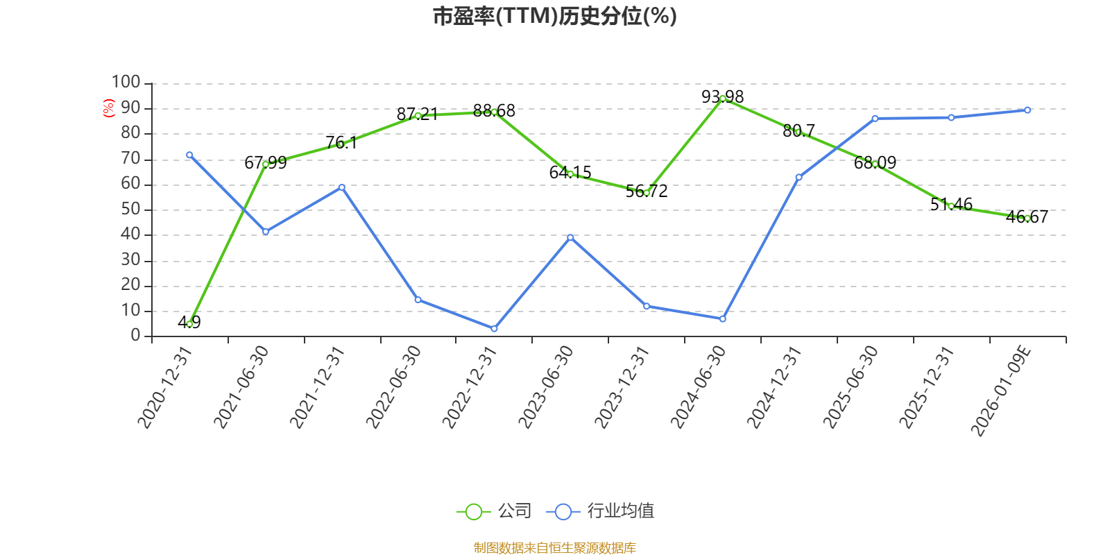 以本次披露业绩预告均值计算,公司近年市盈率(TTM)图如下所示: