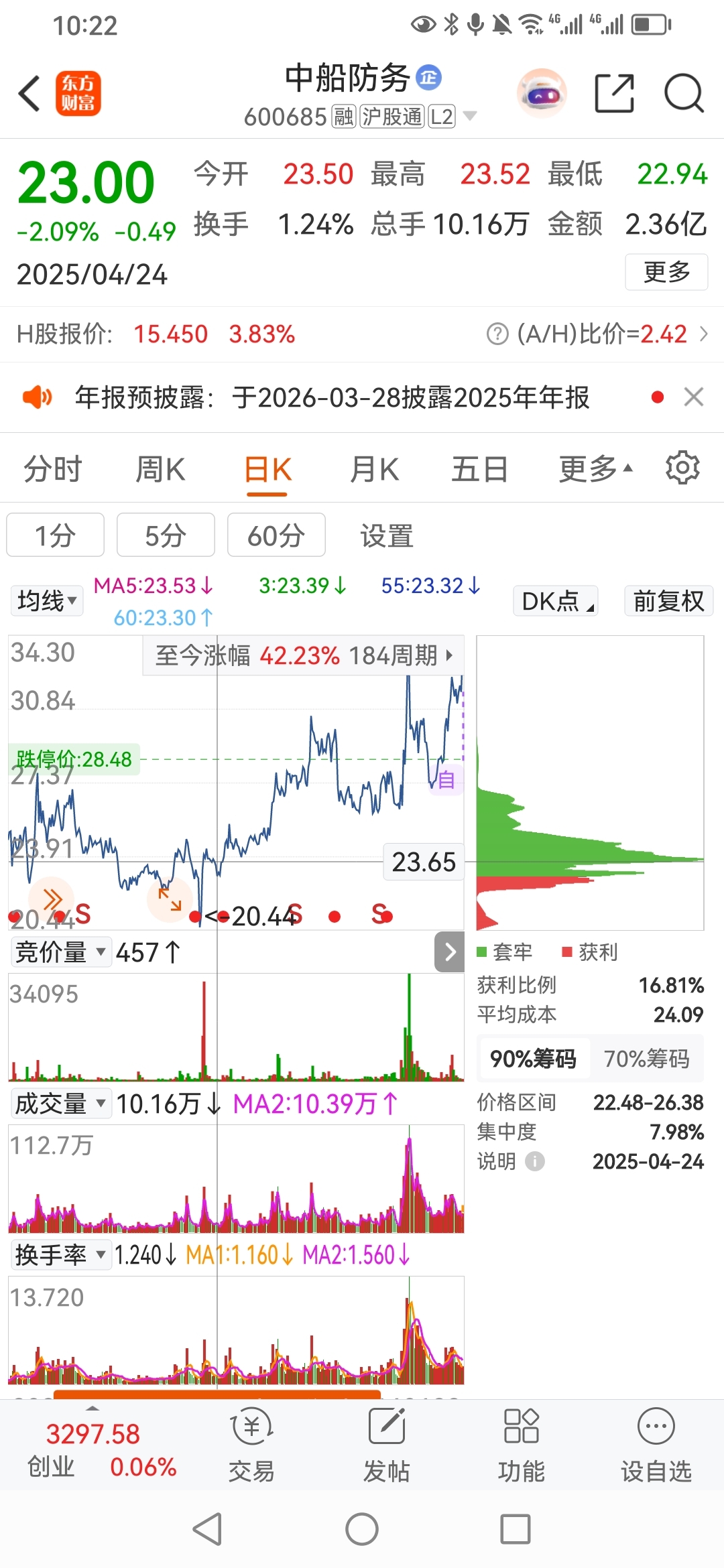 军哥股票,中船防务