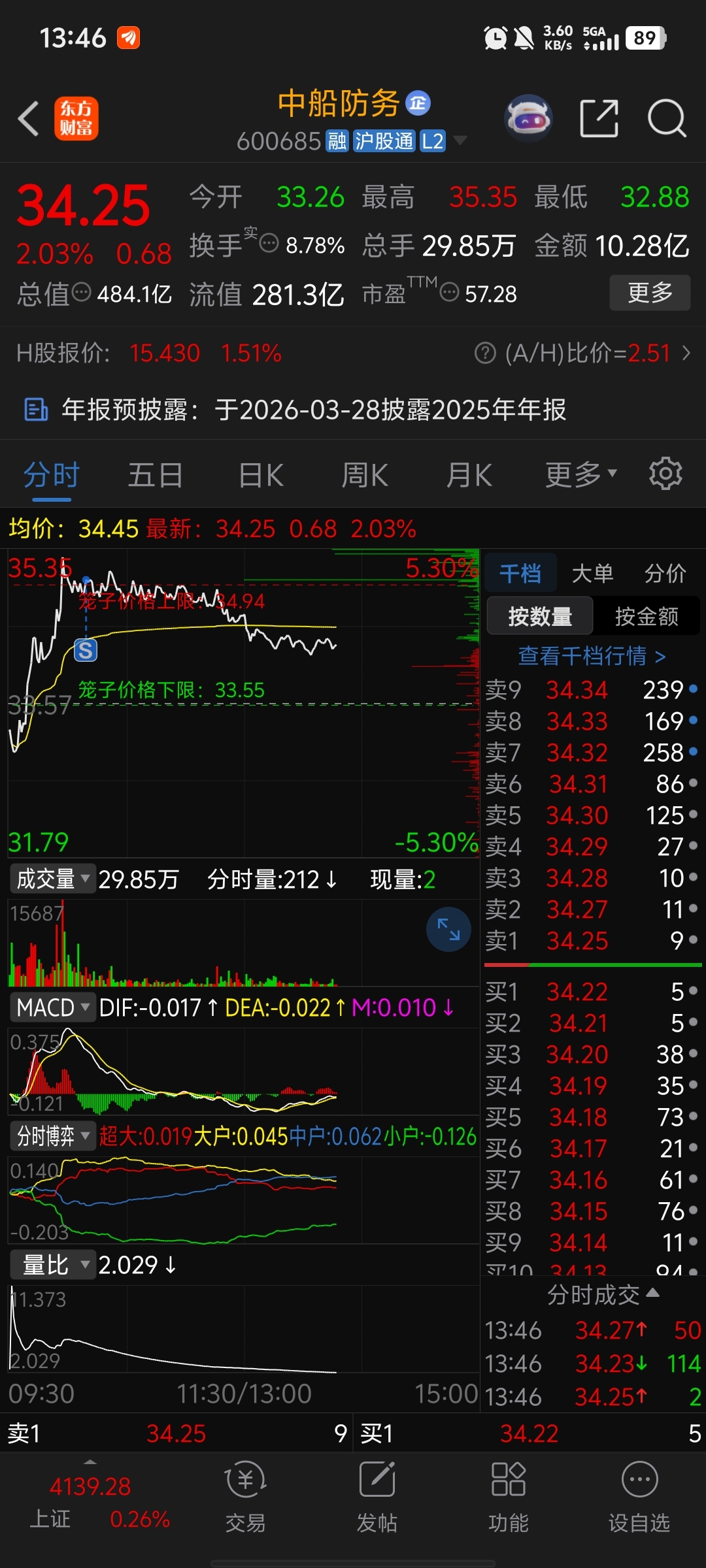 $中船防务(SH600685)$ 前几天32.66接的,上午35T出去