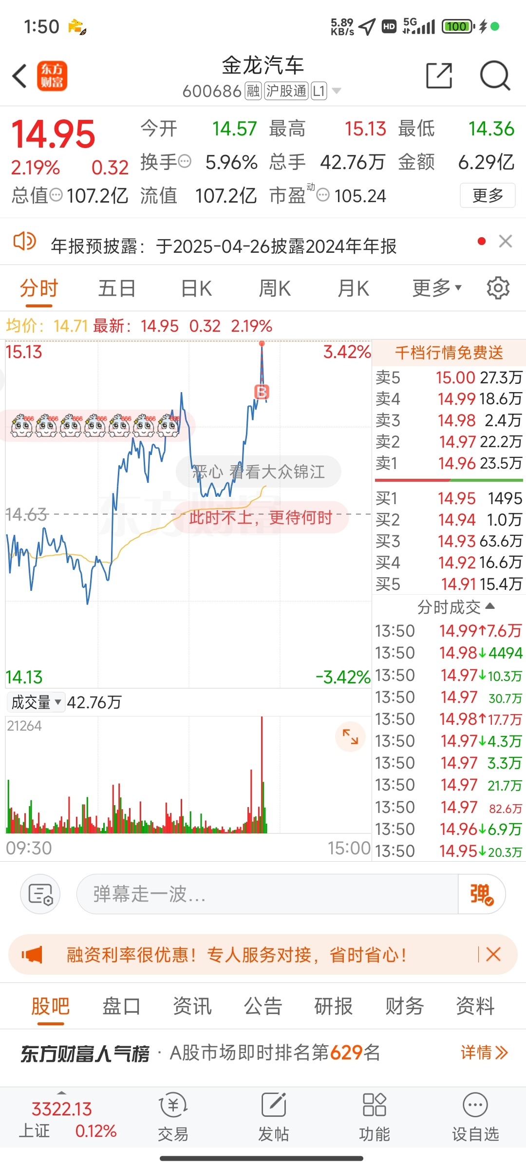 $金龙汽车(SH600686)$ 这么挂着我,你礼貌吗