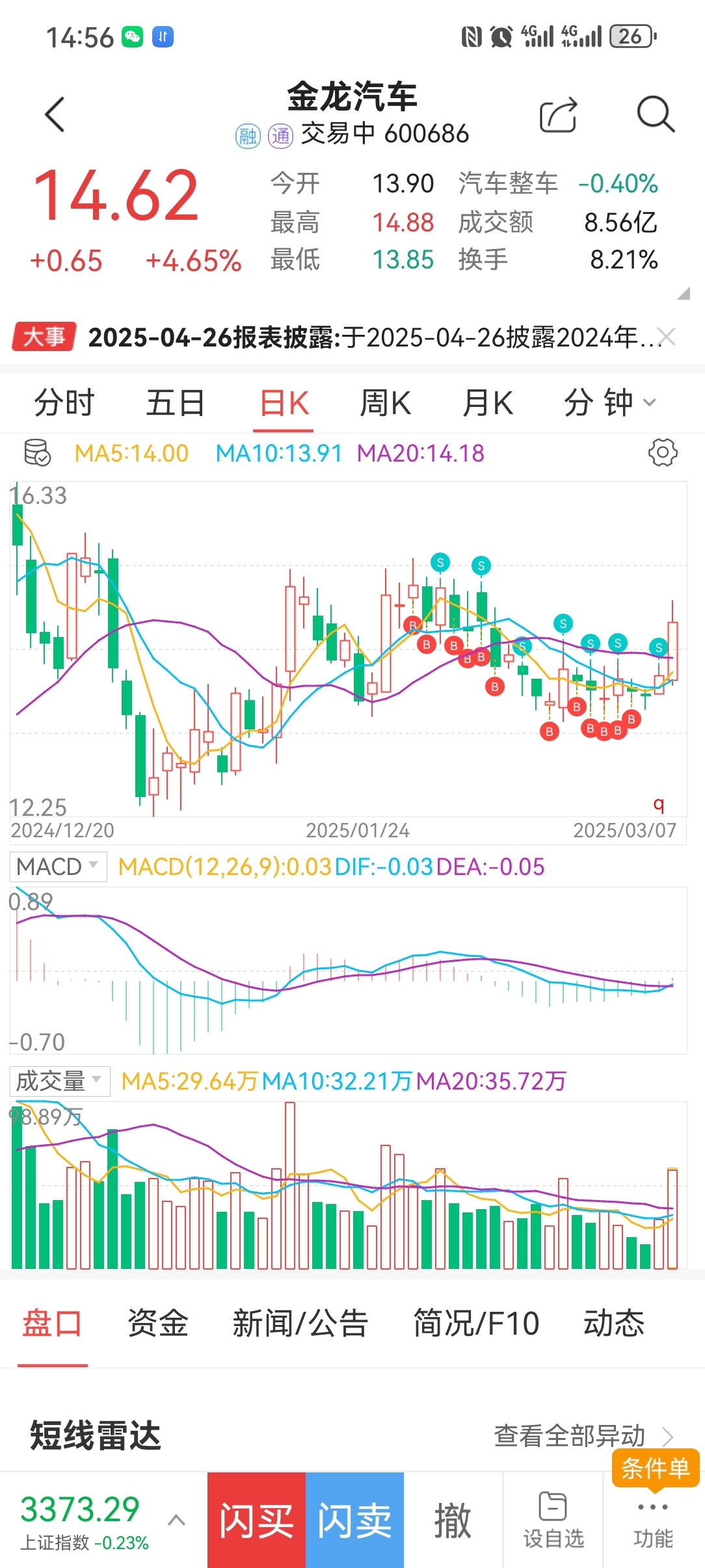 $金龙汽车(SH600686)$ 昨天卖的的,一顿做T然后受够他了,卖了,还亏了200多出来的,唉