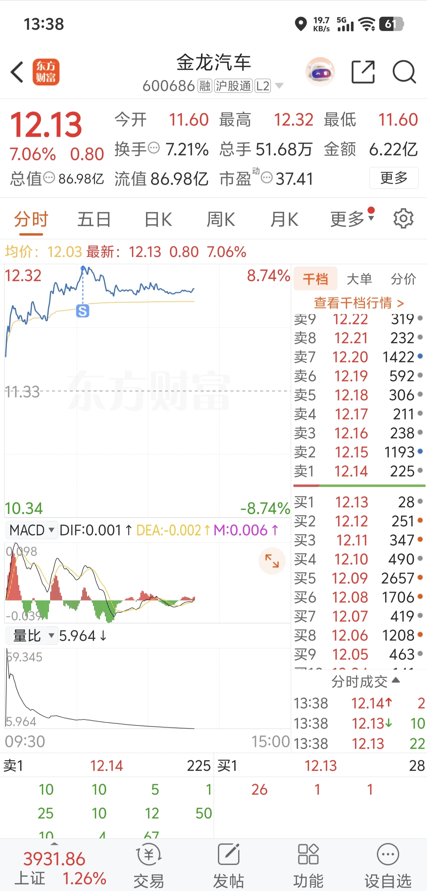 $金龙汽车(SH600686)$ 早上卖了,大哥们现在能不能买回来?
