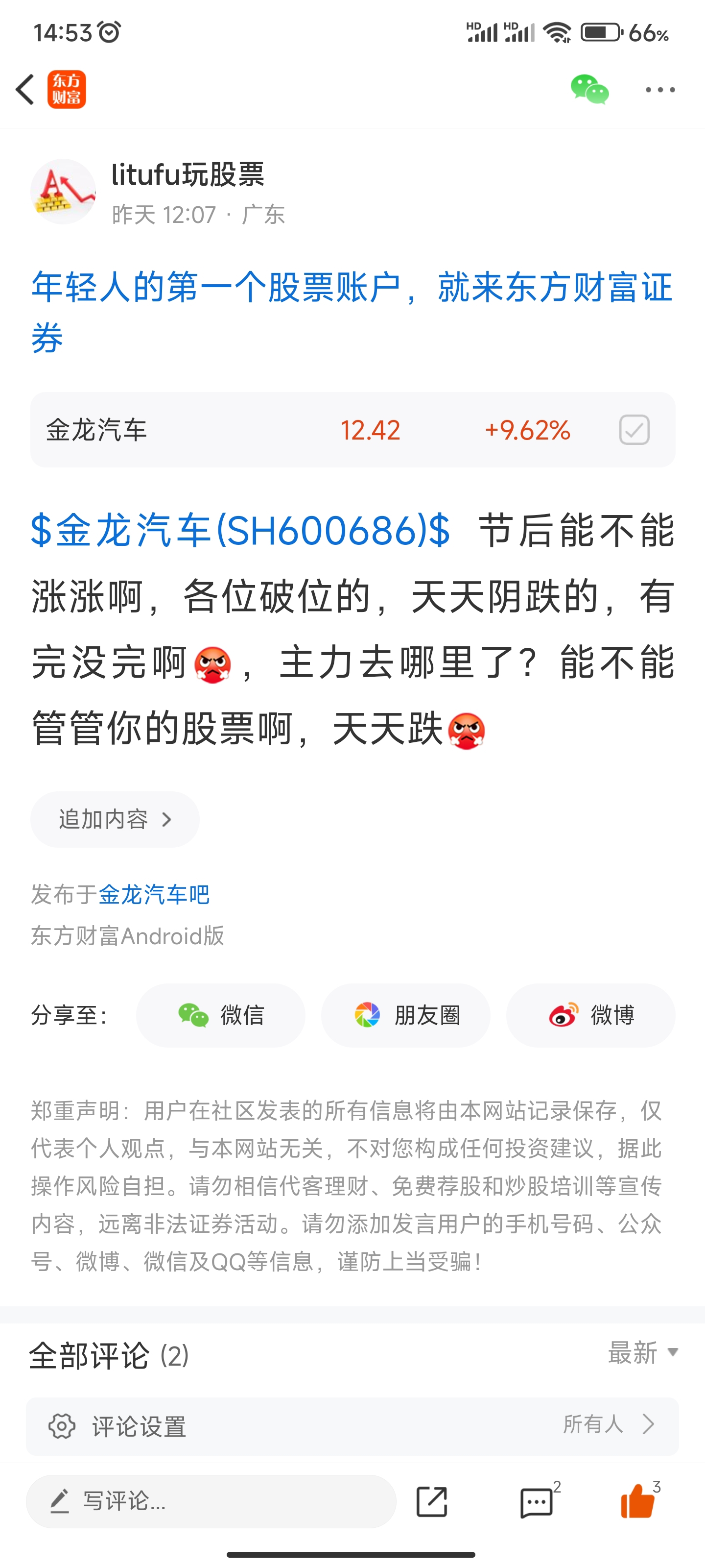 温馨提示: 1.根据《证券法》规定,禁止编造、传播虚假信息或者误导性信息,扰乱证券市场;2.用户在本社区发表的所有资料、言论等仅代表个人观点,与本网站立场无关,不对您构成任何投资建议。用户应基于自己的独立判断,自行决定证券投资并承担相应风险。《东方财富社区管理规定》