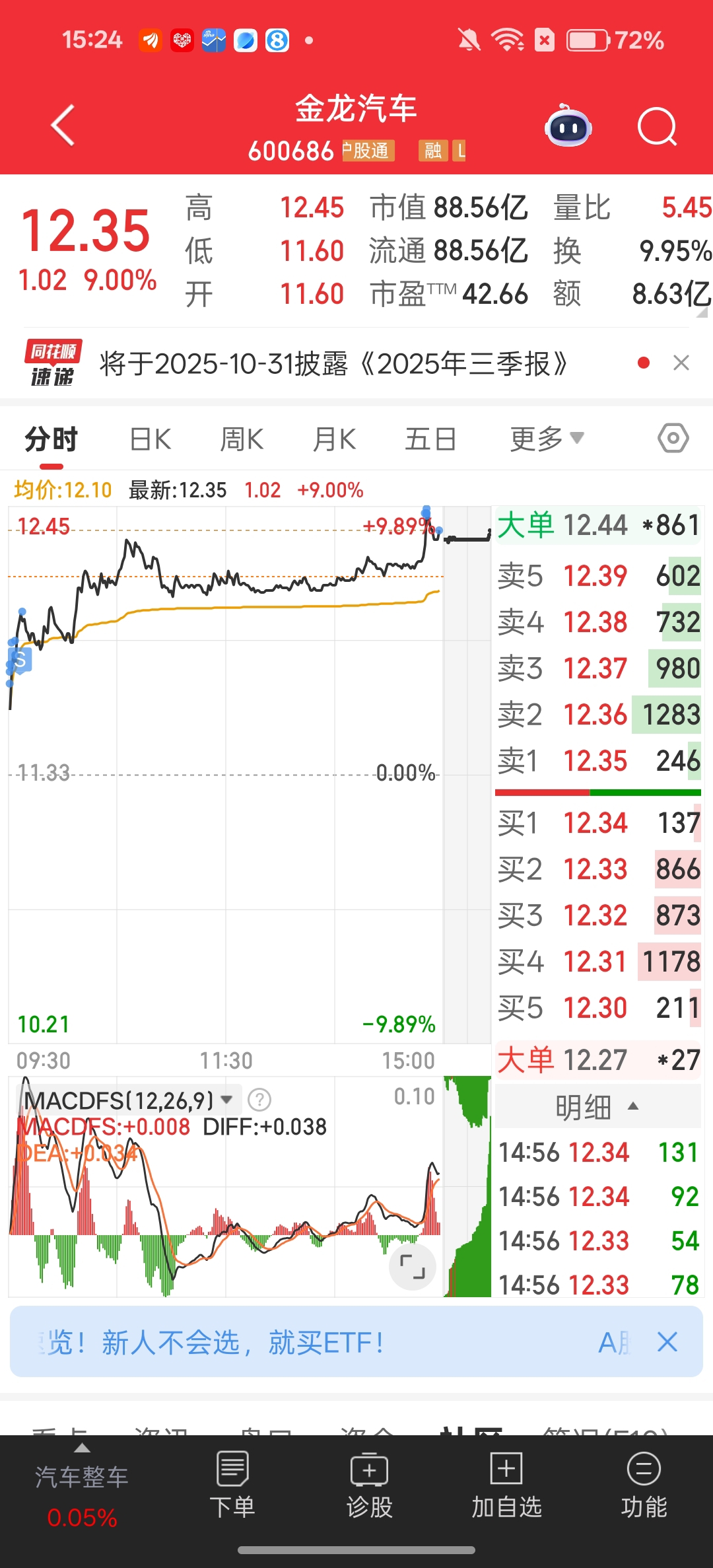 $金龙汽车(SH600686)$ 尾盘再卖,拉高今天卖出成本,明天回调买回,美滋滋