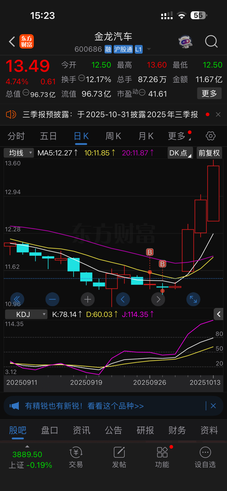 $金龙汽车(SH600686)$ 绝对不给庄家找麻烦 一股不动 跌到十块就加仓