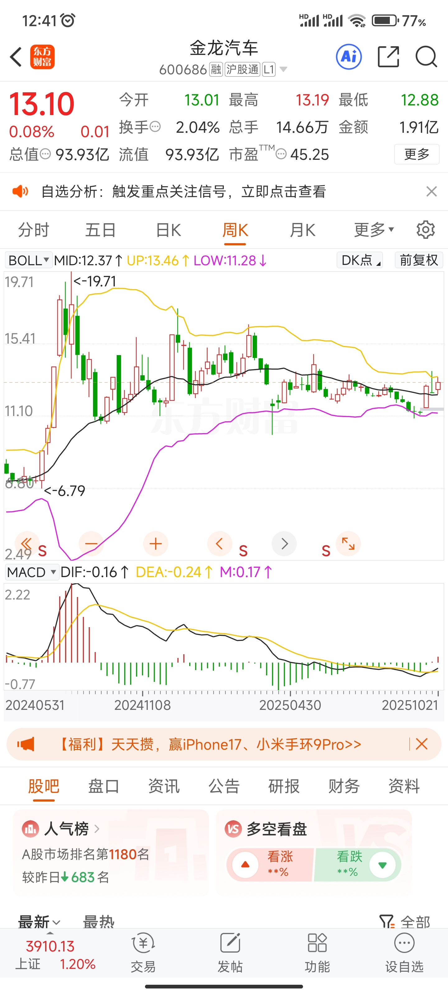 周线macd水下金叉,突破布林线压制,周线多头趋势将至,只等日线突破压力