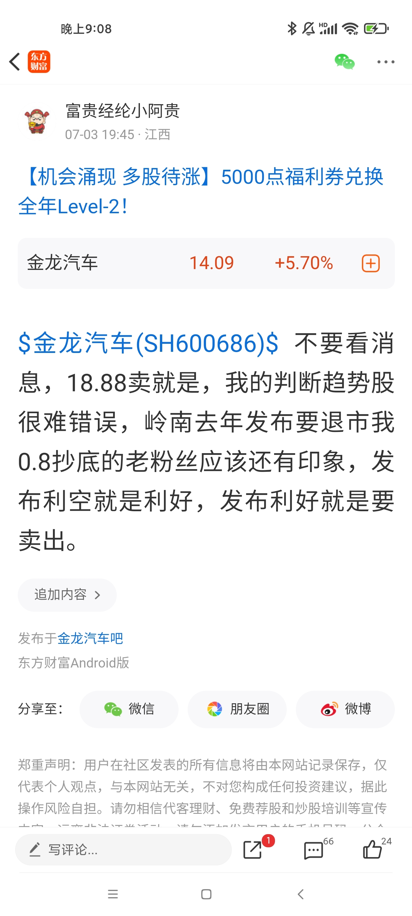温馨提示: 1.根据《证券法》规定,禁止编造、传播虚假信息或者误导性信息,扰乱证券市场;2.用户在本社区发表的所有资料、言论等仅代表个人观点,与本网站立场无关,不对您构成任何投资建议。用户应基于自己的独立判断,自行决定证券投资并承担相应风险。《东方财富社区管理规定》