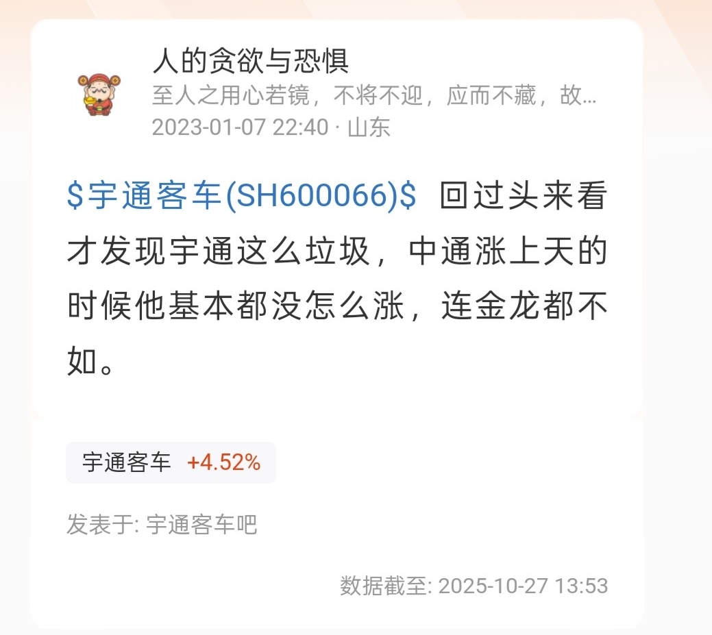 $金龙汽车(SH600686)$ 回过头来看才发现金龙这么垃圾,宇通涨上天的时候他基本都没怎么涨,连中通都不如!!