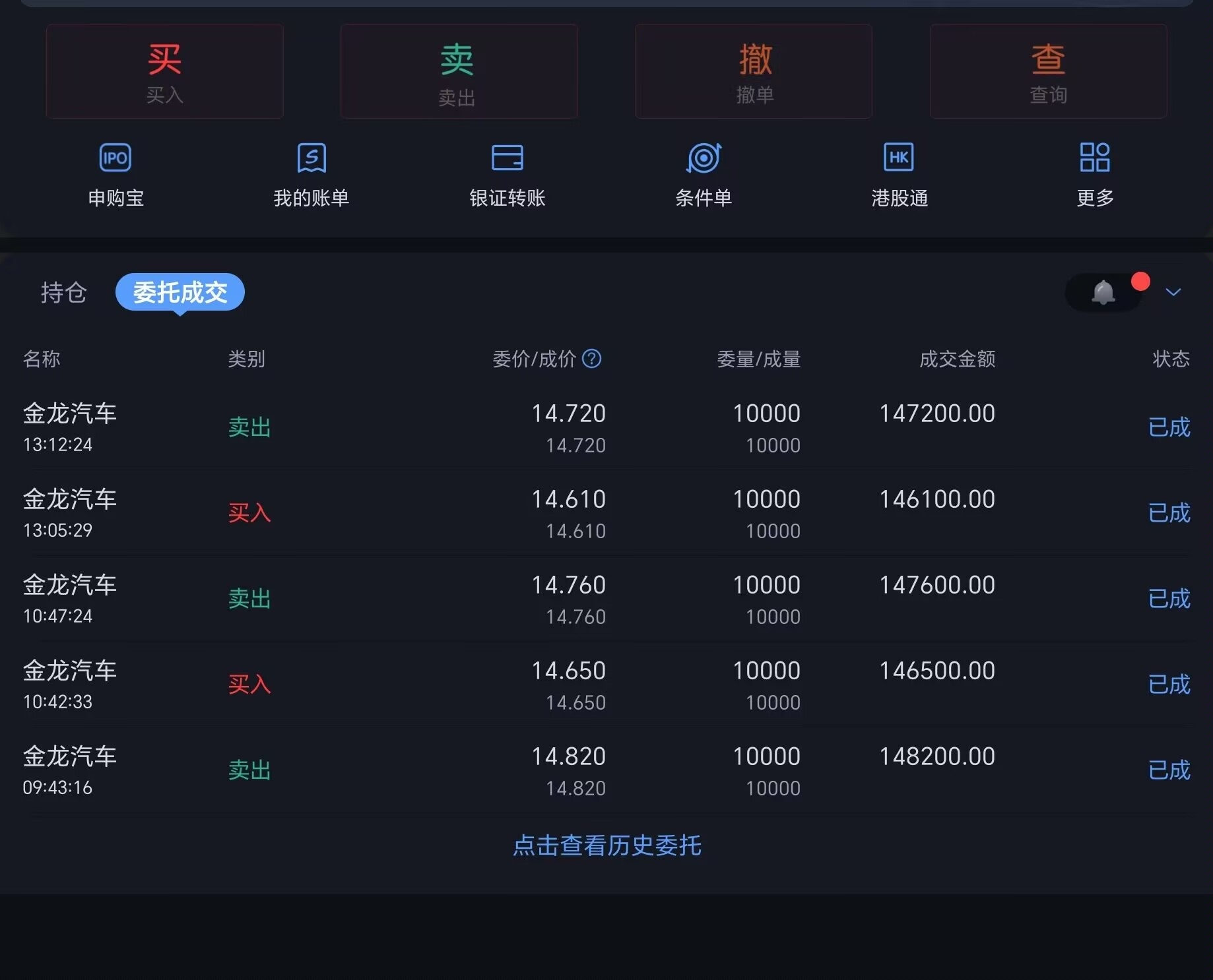 $金龙汽车(SH600686)$ 早盘14.82卖出的成交点燃了我的贪婪