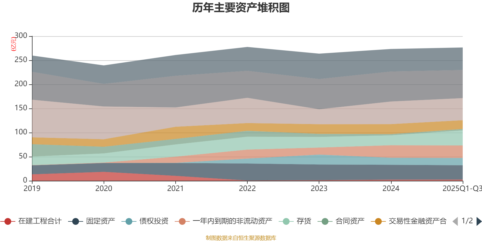 资产重大变化方面,截至2025年三季度末,公司存货较上年末增加52.54%,占公司总资产比重上升3.84个百分点;货币资金较上年末减少6.43%,占公司总资产比重下降1.71个百分点;交易性金融资产合计较上年末减少11.27%,占公司总资产比重下降0.92个百分点;应收款项融资较上年末增加33.6%,占公司总资产比重上升0.67个百分点。