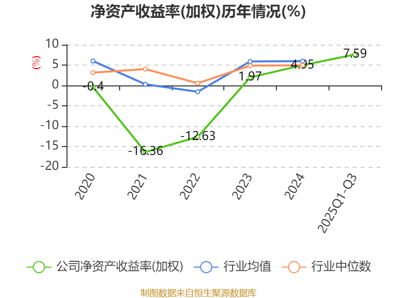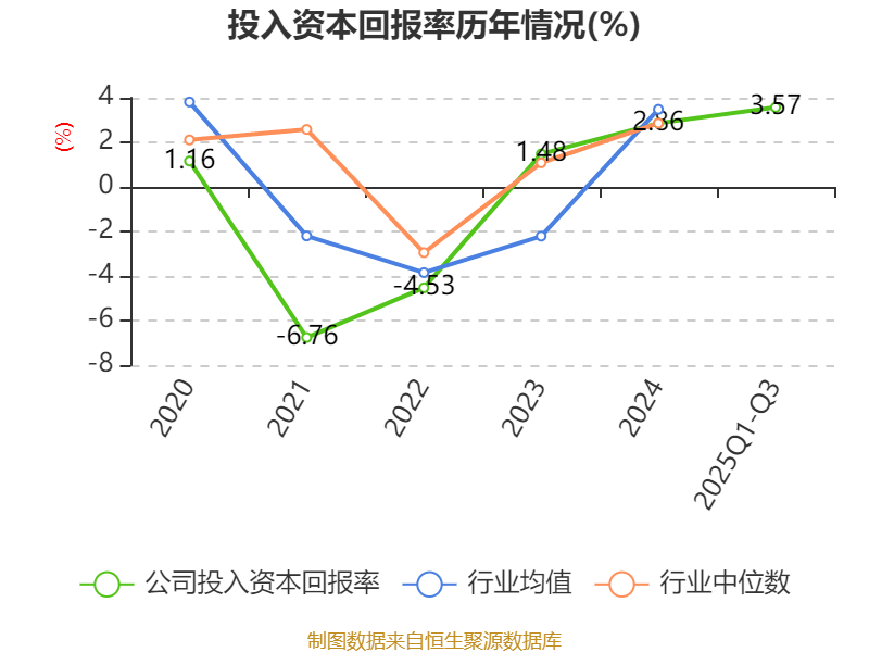 盈利能力方面, 2025年前三季度公司加权平均净资产收益率为7.59%,同比上升5.17个百分点。公司2025年前三季度投入资本回报率为3.57%,较上年同期上升1.77个百分点。