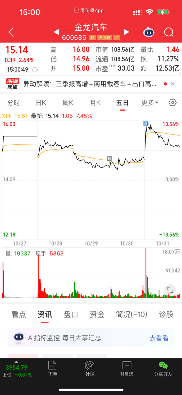 $金龙汽车(SH600686)$ 6个点抛金龙。