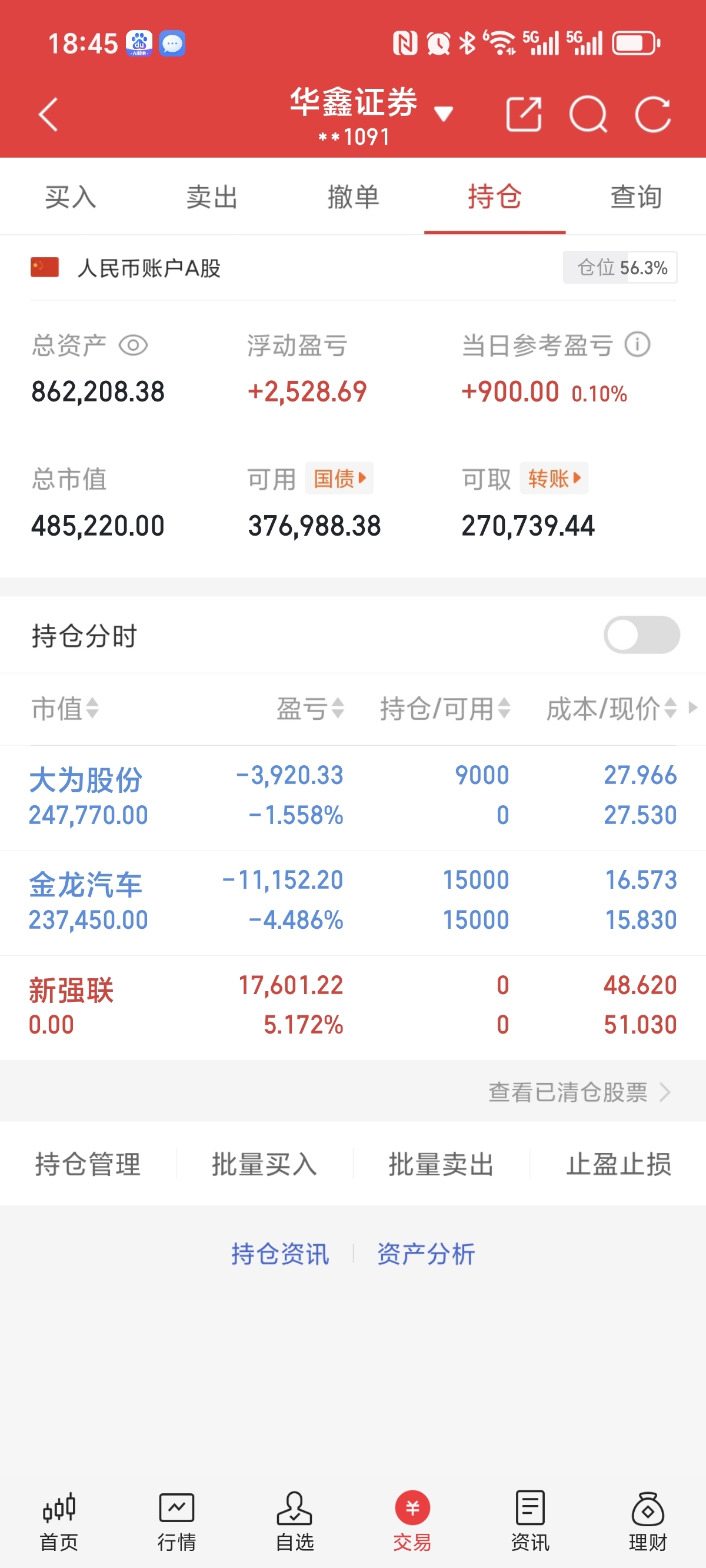 11月17日-美好记录生活第104天。入:大为股份。出:新强联。持:金龙汽车,大