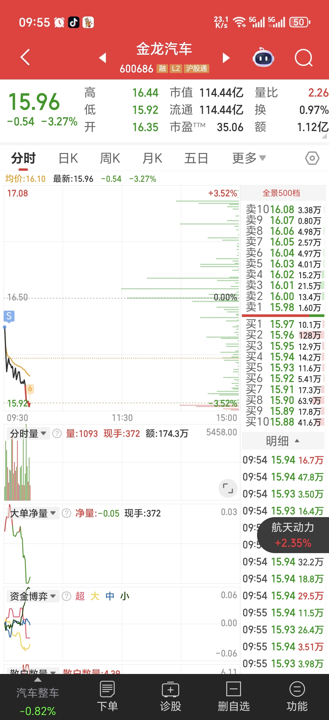 $金龙汽车(SH600686)$ 竞价出了你,进了航动