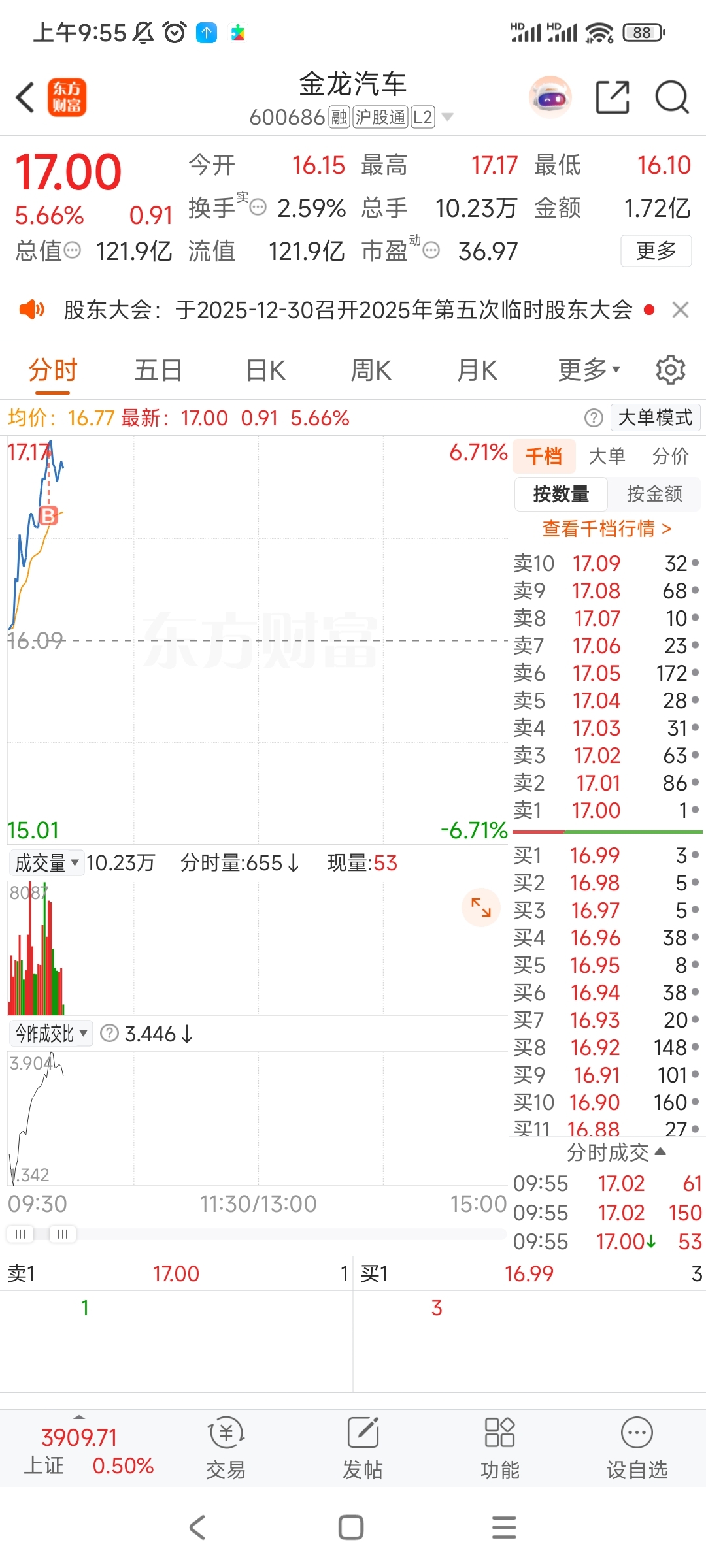 $金龙汽车(SH600686)$ 我来了,快跑!