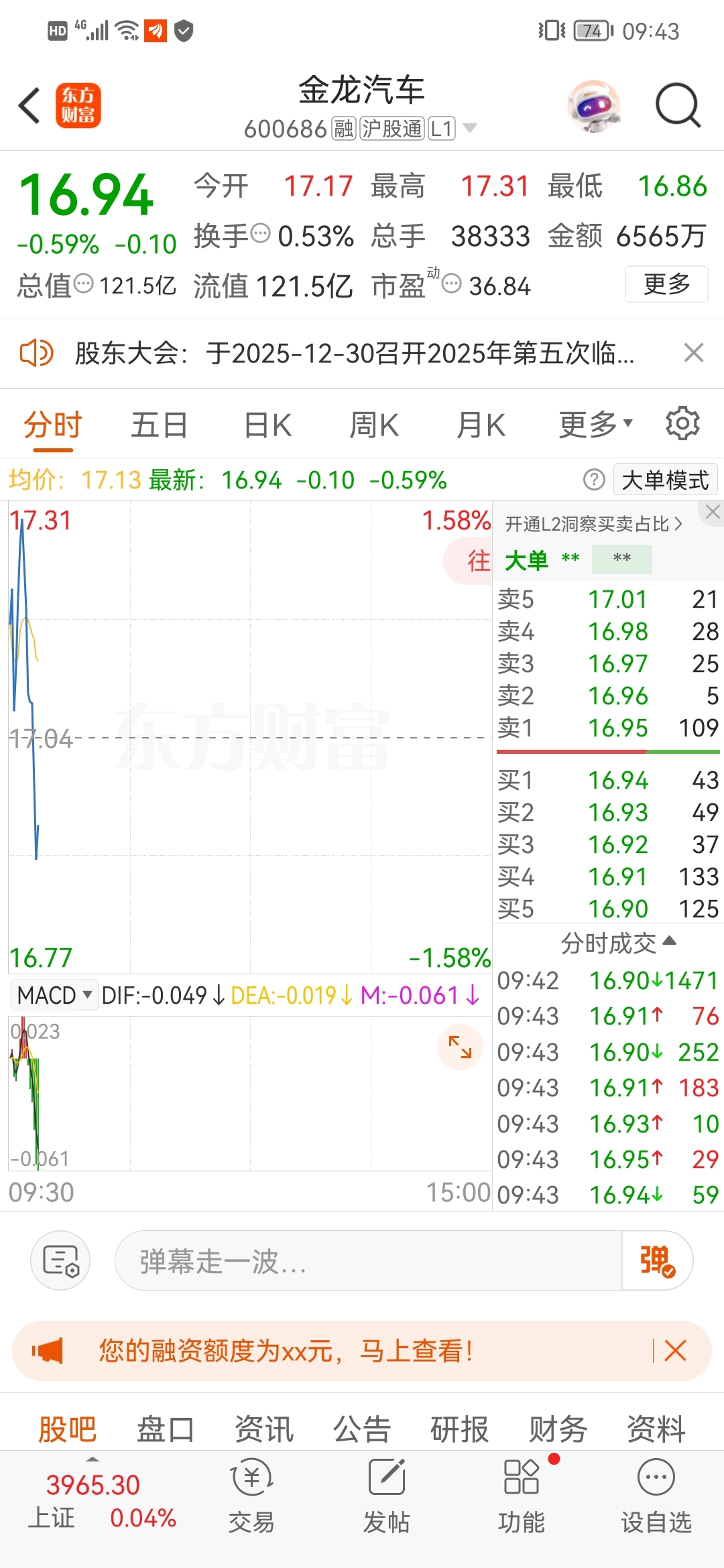 $金龙汽车(SH600686)$ 大胆买必上1850