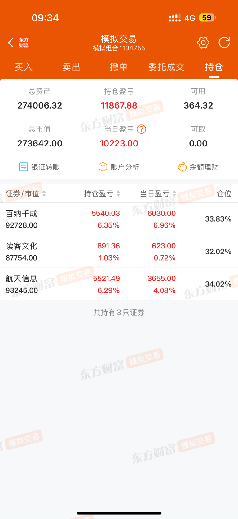 满仓金龙一动没动,昨天买的模拟买着玩的,要是想投机,建议去读客文化潜伏