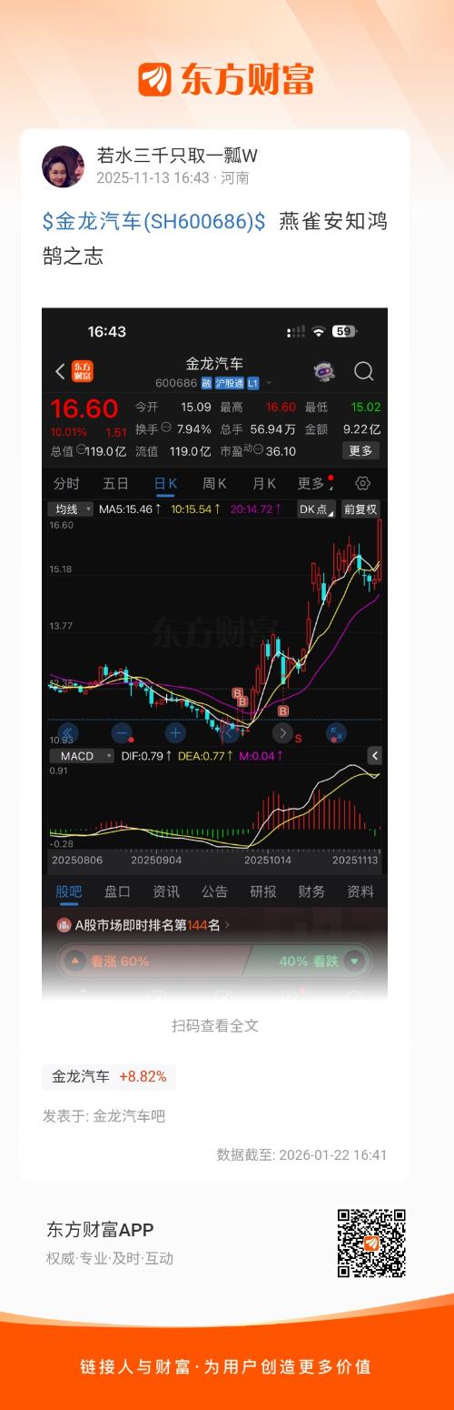$金龙汽车(SH600686)$  燕雀安知鸿鹄之志