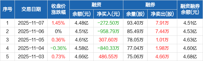 上海石化:融资净偿还272.5万元,融资余额4.48亿元(11-07)