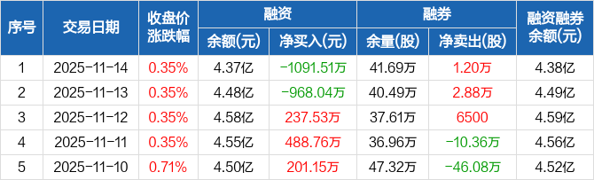 上海石化:融资净偿还1091.51万元,融资余额4.37亿元(11-14)
