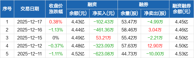 上海石化:融资净偿还102.43万元,融资余额4.43亿元(12-17)