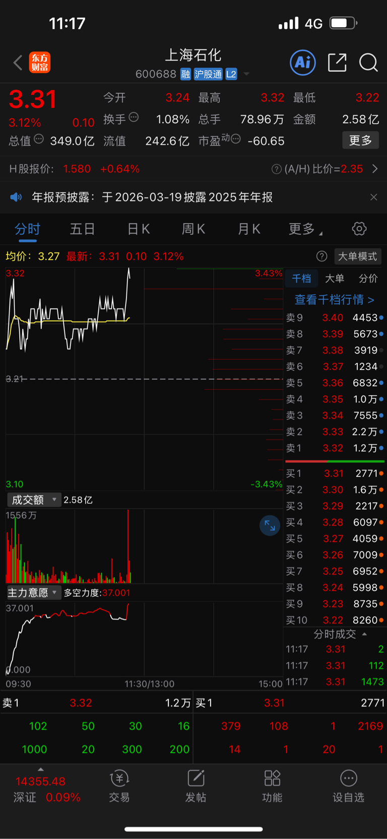 $上海石化(SH600688)$ 如果涨8个点卖了,下午。主力