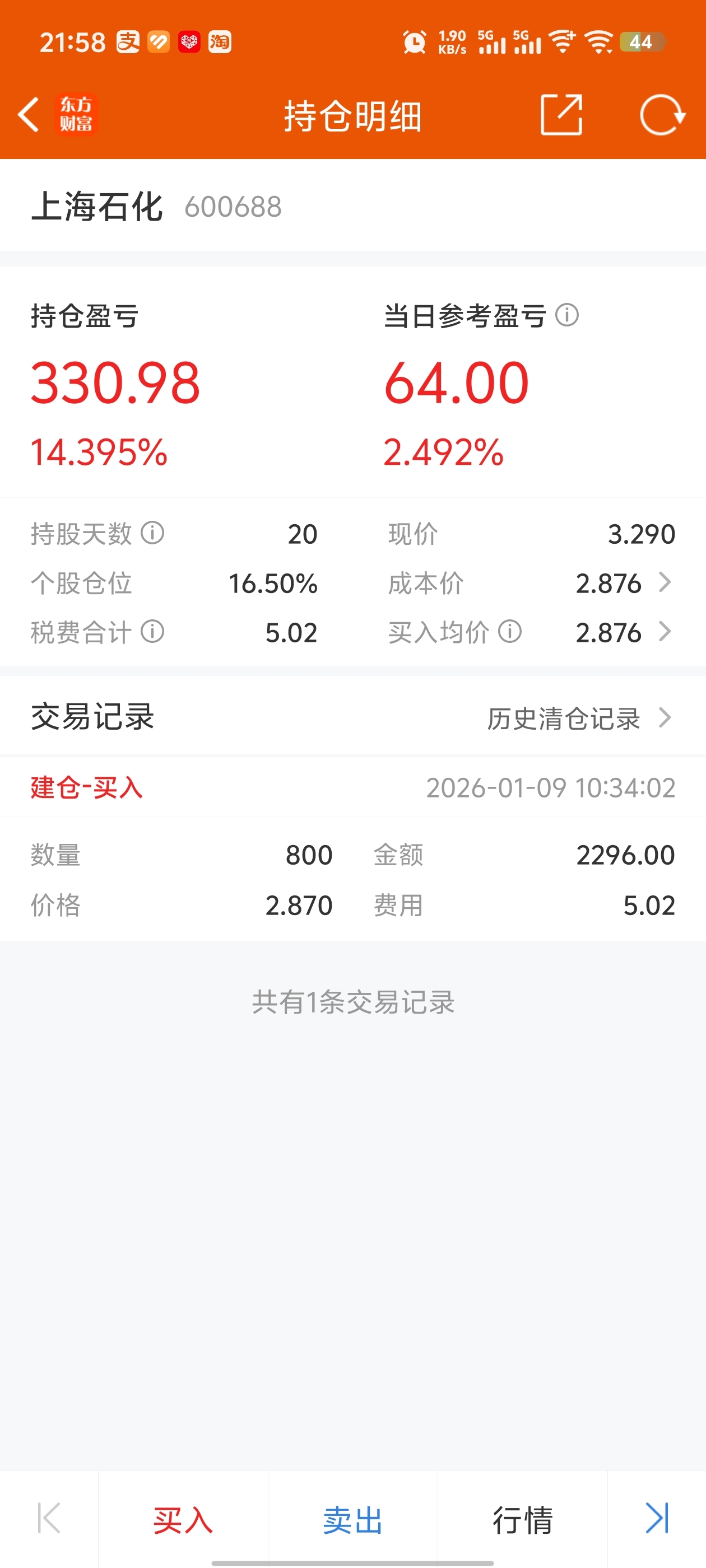 $上海石化(SH600688)$ 说要起飞的,我也不知道咋想的,我都拿了20天了,也没见起飞一次。