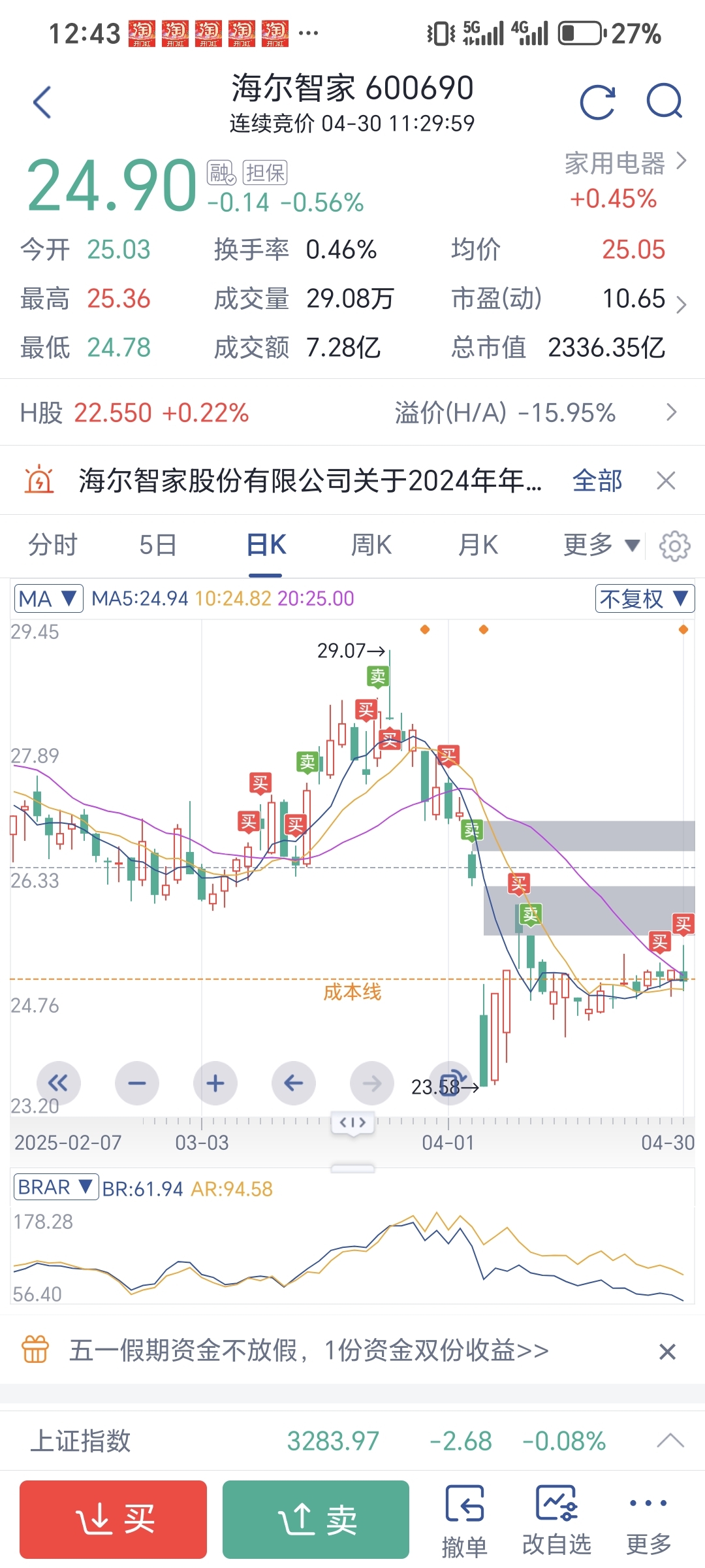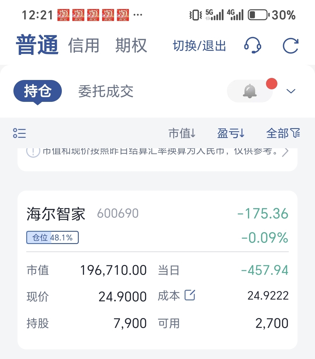 一路被海尔追着毒打。中途清仓跑去玩其他热门板块玩短线,也被毒打,现在老实了,投降