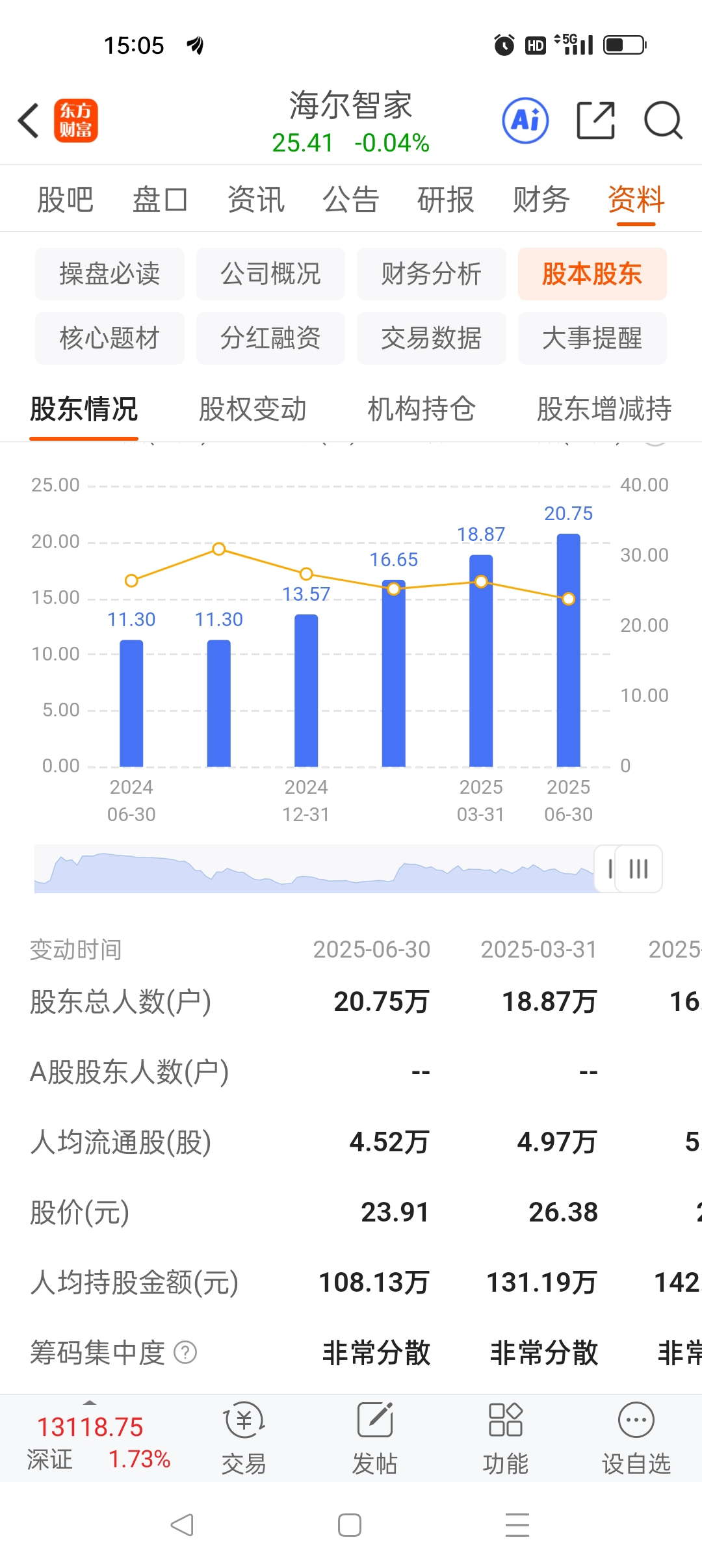 $海尔智家(SH600690)$ 海尔智家已经完全散户化了,机构不停的在派发。