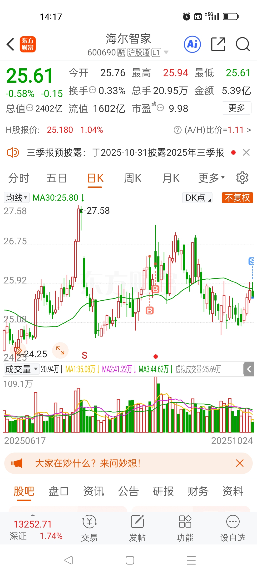 $海尔智家(SH600690)$ 家电股的钱真不是什么人都能赚的。我们往往羡慕那些持有十多年格力的老股民。但却没有体会到他们一路过来的过山车。我在此认输了,承认赚不了家电股的钱。在此向坚守家电股的前辈致敬
