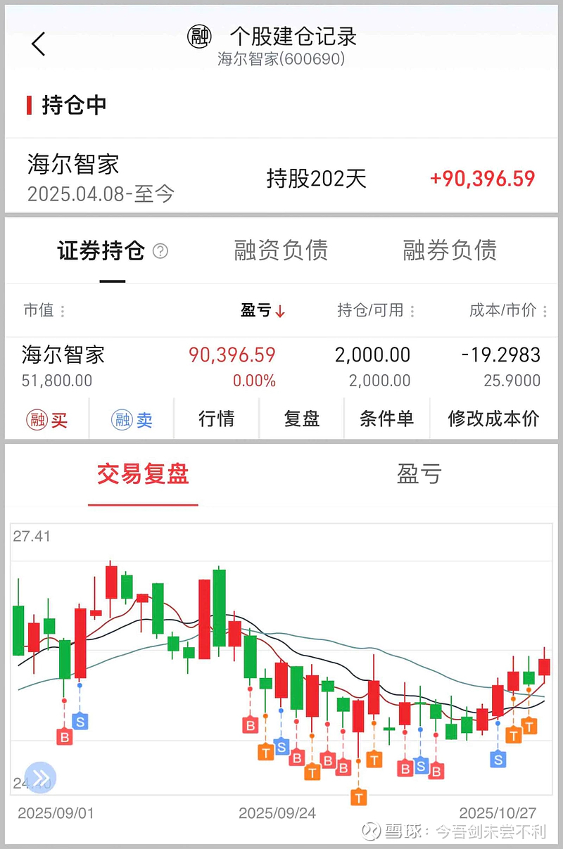 回到本小散的投资上面,今天在25.80~26.00元区间陆续减持了海尔,目前还剩2000股持仓,海尔的账面浮盈首次超过9W,本小散主打养生局,既然本月目标基本达成,不打算继续进攻了,休息一段时间,以上帝视角去观看4000点大战,岂不美哉!