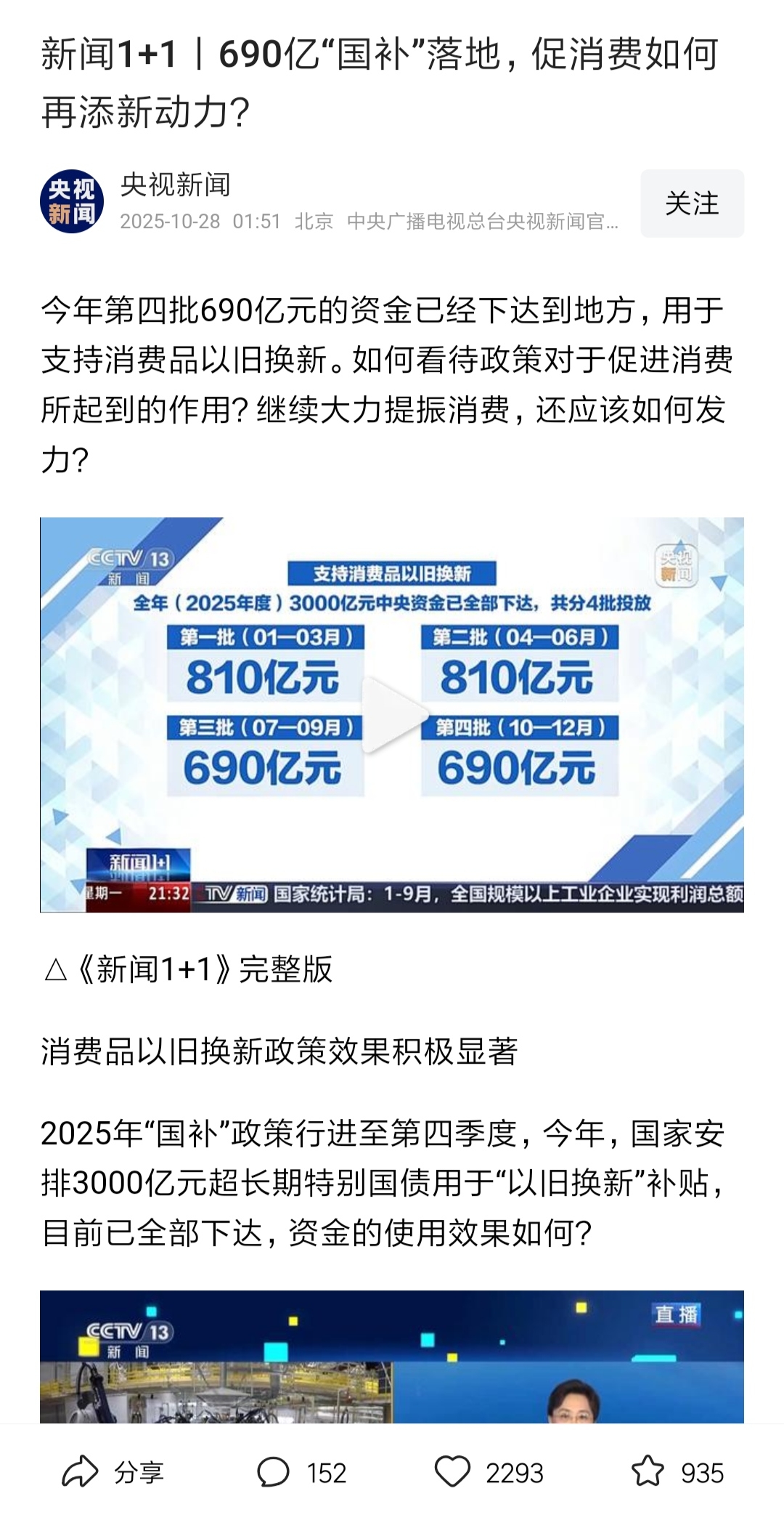 $海尔智家(SH600690)$ 以旧换新第四批690亿下到地方