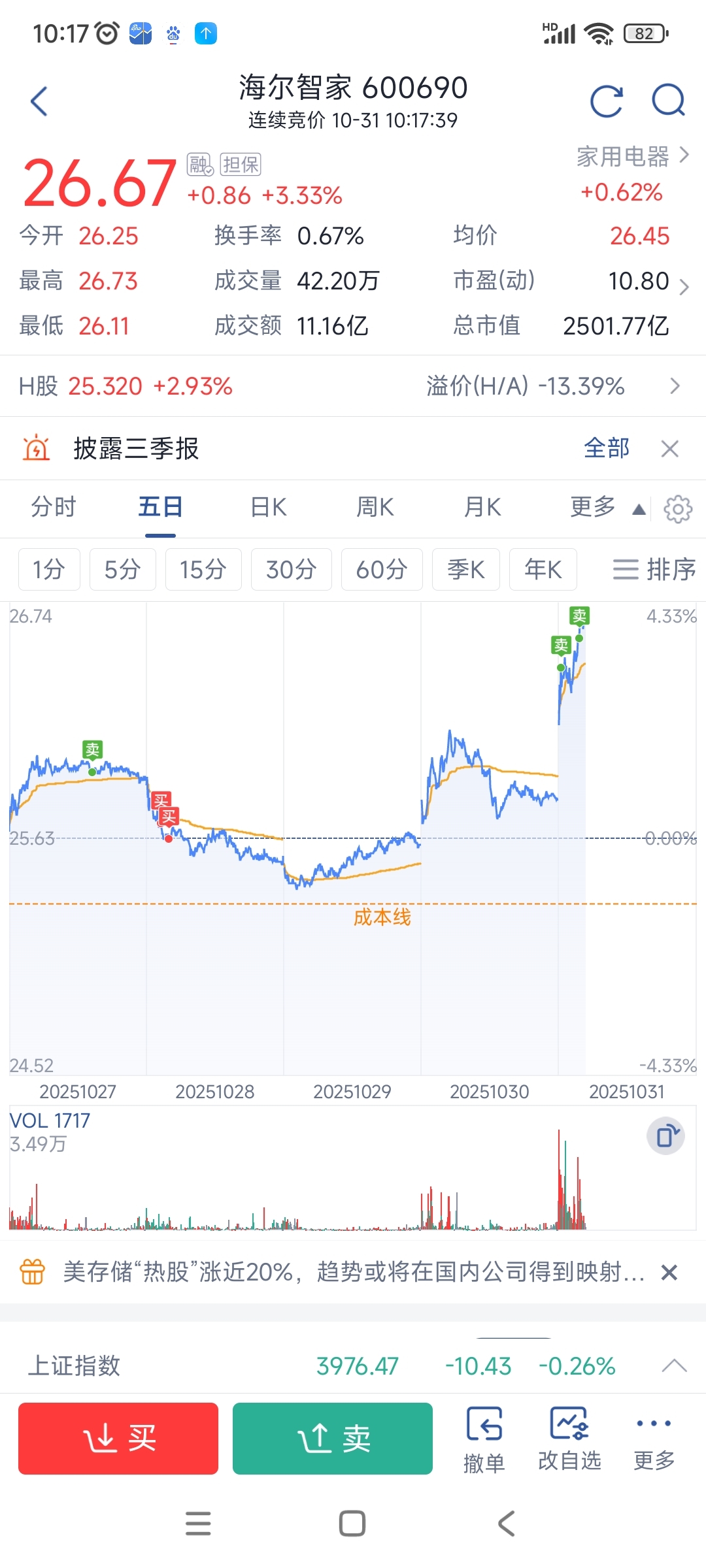 在海尔老登一定要做T,今天不跳水下周一也要拉稀,卖就对了