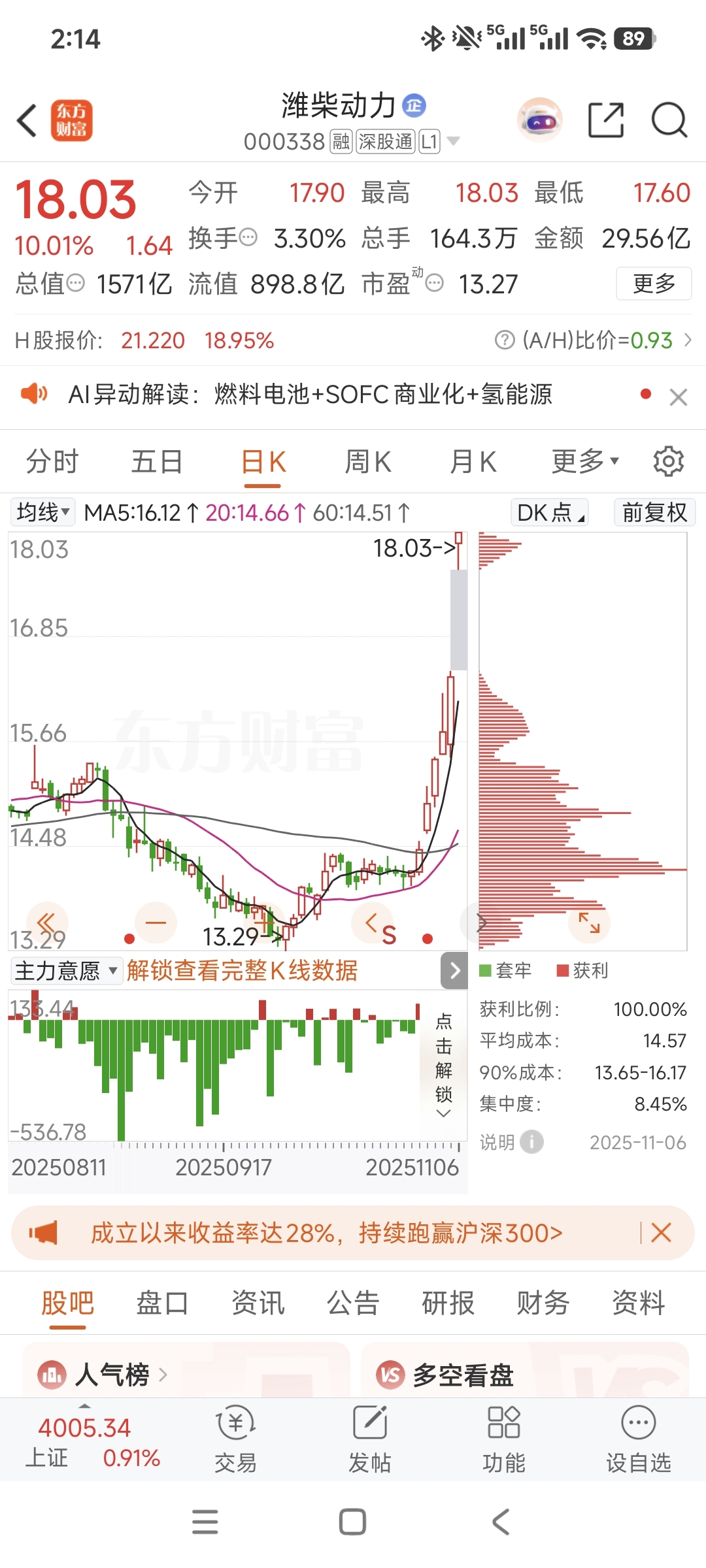 $海尔智家(SH600690)$ 鲁股里面的弱势股,真是太弱了,前面的中际旭创你高攀不起,后面的潍柴也快超越你了