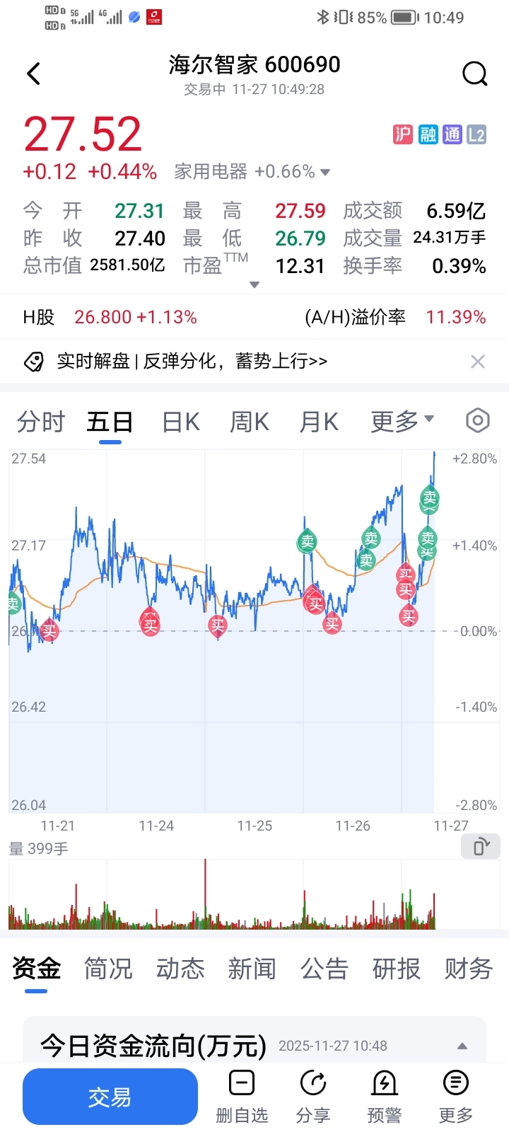 $海尔智家(SH600690)$ 哎,吃不得四菜之人,卖飞了