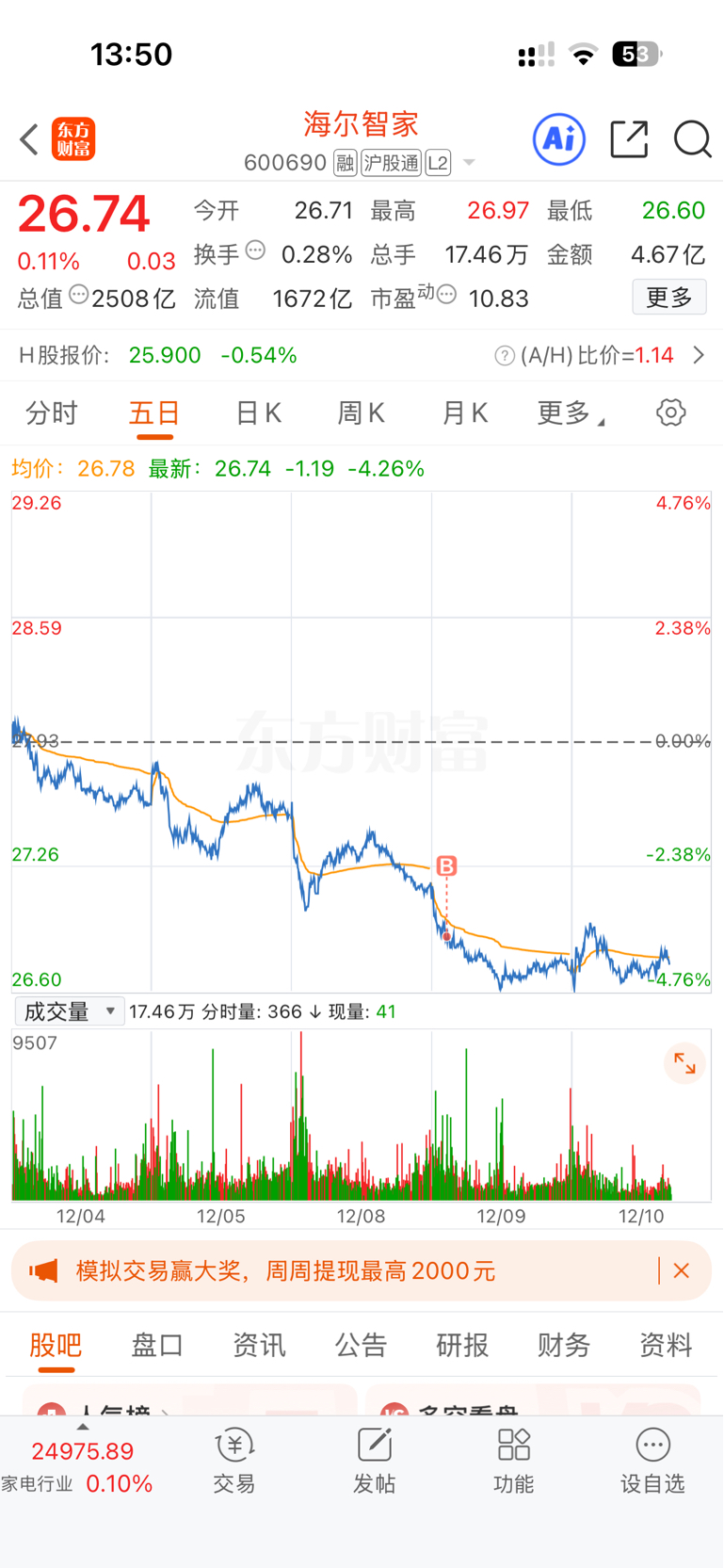 $海尔智家(SH600690)$ 刚买了就开始漫漫回本之路