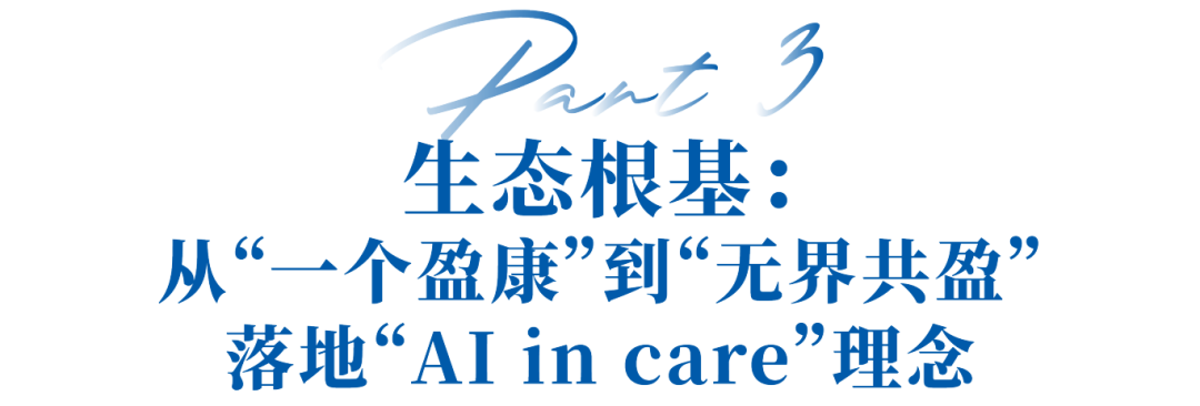 基于对医疗AI的深刻洞察与实践,盈康一生提出“AI in care”理念,既根植于“生态品牌”战略底色,也与国家“推动医工交叉融合、加速成果转化”的政策要求深度契合,一系列实践成果成为理念落地的有力佐证。