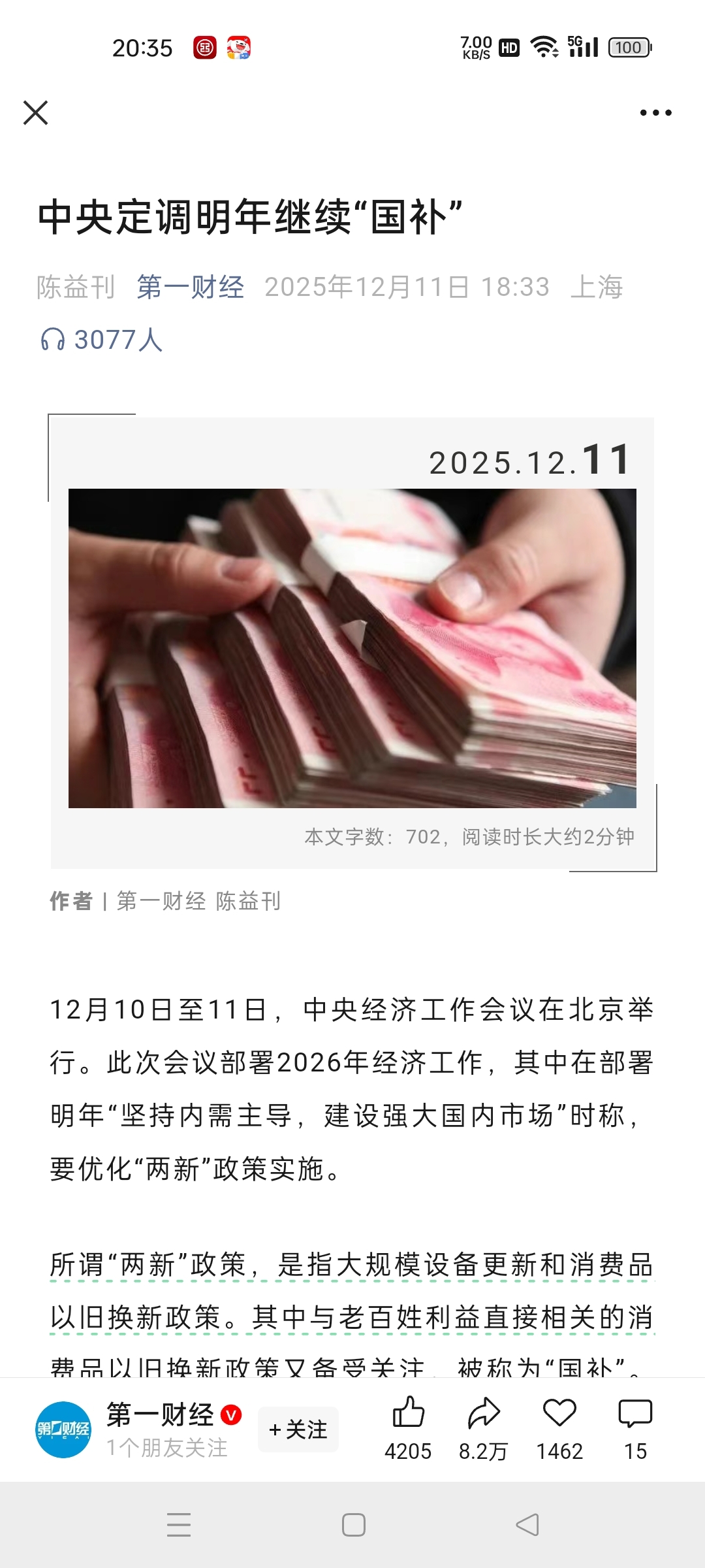 $海尔智家(SH600690)$ 明年国补继续,这个算利好吧