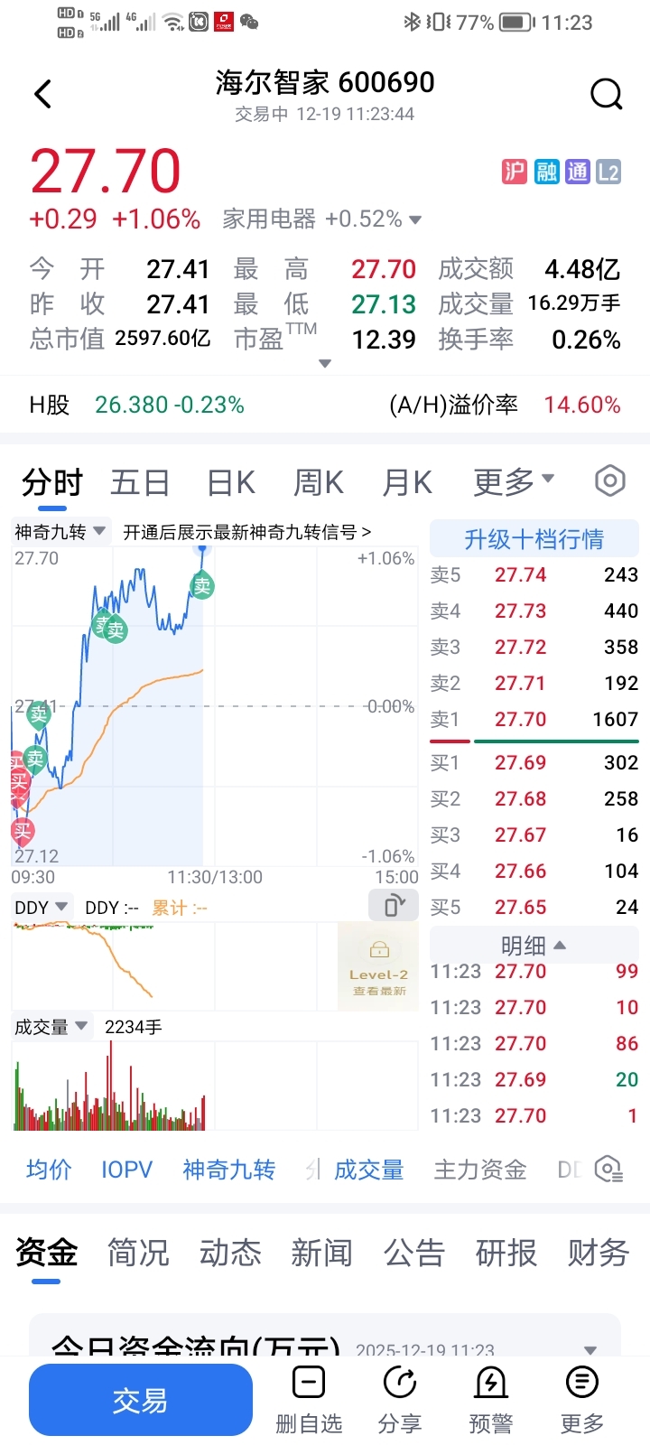 $海尔智家(SH600690)$ 每天T,习惯了,也错过大涨。