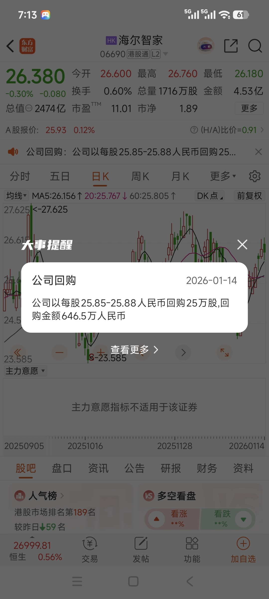 $海尔智家(SH600690)$ 今天又回购了,等回购结束,股价才能上去