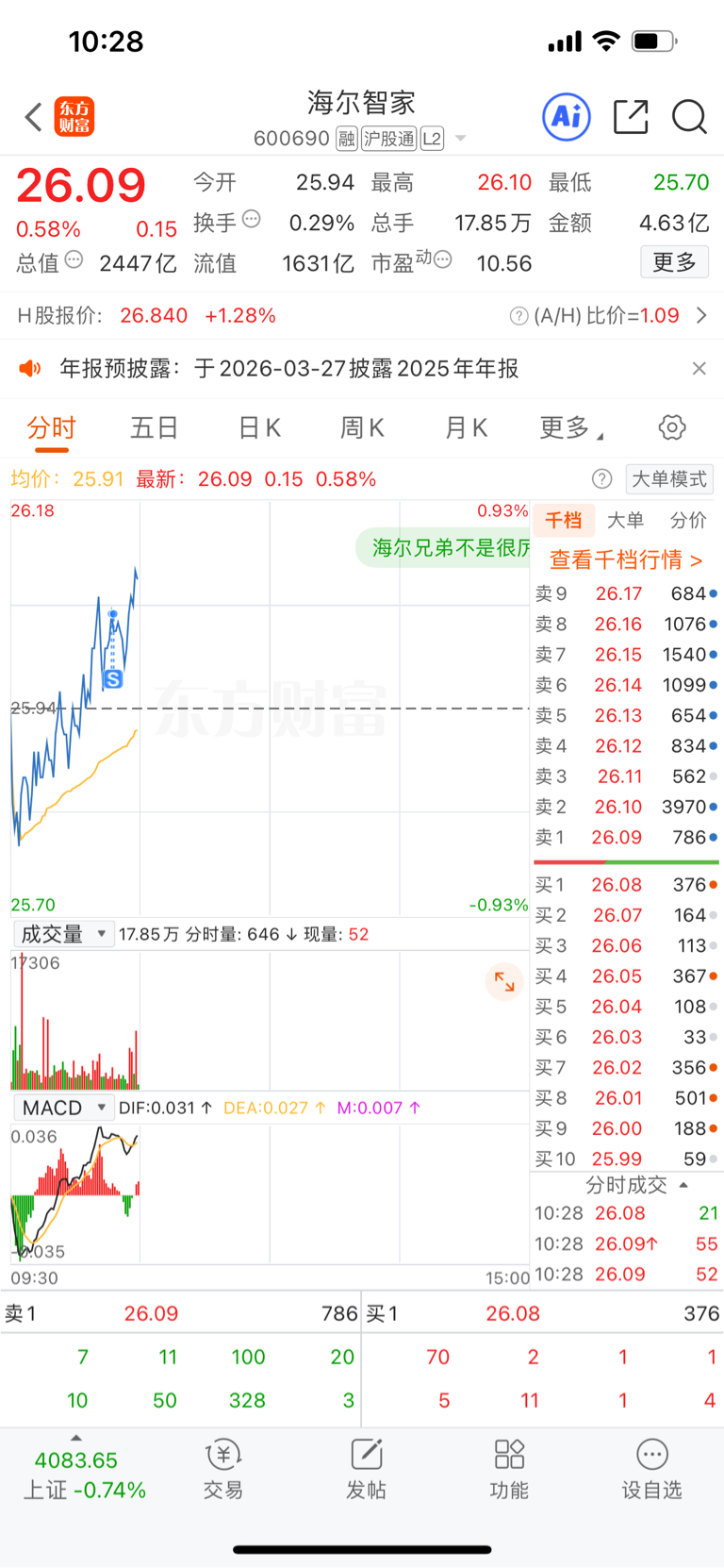 $海尔智家(SH600690)$ 不会T飞了吧???