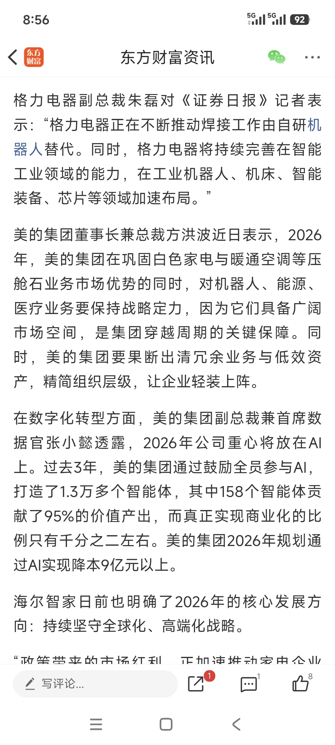 美的字最多,格力次之,海尔不想报道还得加上吧